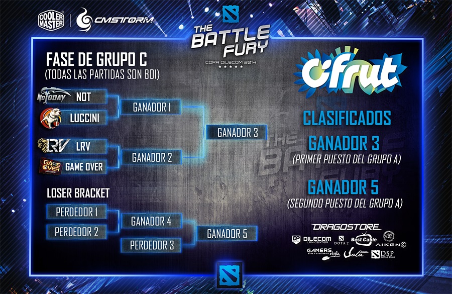 La organización de The Battlefury 2014 realizo una ceremonia, en la cual asistieron la mayoría de los managers de los equipos para poder presenciar el sorteo de los equipos en los grupos (A,B,C Y D). El resultado del sorteo fue el siguiente: